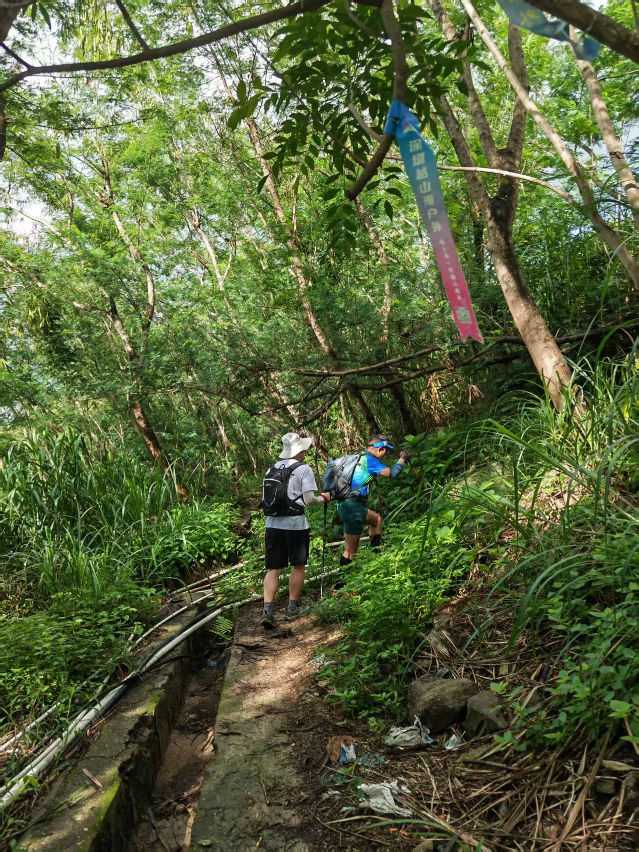 出发前,查看天气预报后,我们按原计划出行,做好了防晒措施,带足了补给用水。我选择了从一般推荐的路线出发,即向前走到高山脚过涵洞,虽然要多走2公里路,但这也是提前感受三水线挑战的开始。经过400多米的陡峭爬升,便与另一个版本的路线重合了,而这400米的爬升,已然让我初步领略到了三水线的艰难。